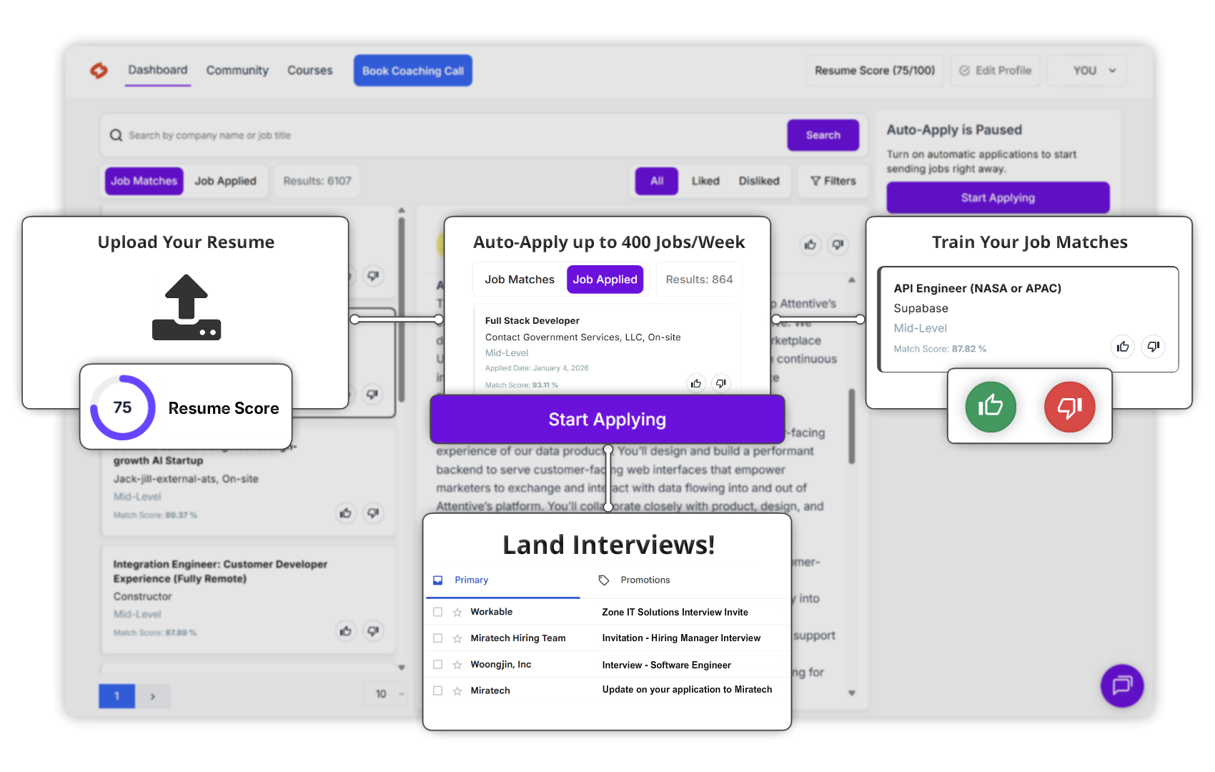 ApplyPass continues submitting applications while I focus on interviews and interview preparation. This maximizes my chances of landing more interviews while eliminating my anxiety.